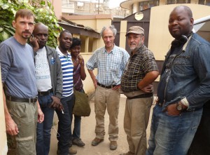 06 The team is ready for the fieldwork. From left to right: Thierry Smith (RBINS); Patsy, Patrick & Nicole Kitambala Yaya (CRGM); Damien Delvaux & Daniel Baudet (RMCA); Elvis (CRGM)